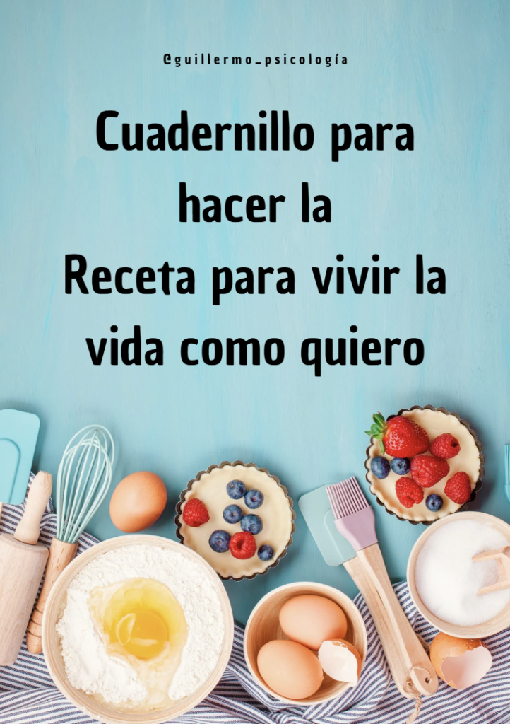 Este cuadernillo es un apoyo que me gusta usar en la terapia para poder fomentar que la persona vaya dando pasos en la dirección que quiere. Está basado en la metáfora del Cocinero. Otro clásico en ACT que habla de las áreas importantes de tu vida como si fueran una receta con los ingredientes que tiene sentido para ti echar.